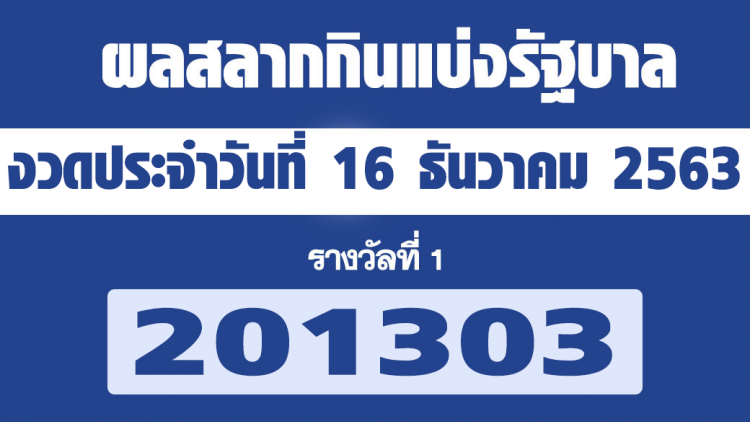 ตรวจหวย สลากก นแบ งร ฐบาล 16 ธ นวาคม 2563 รางว ลท 1 ค อ 201303